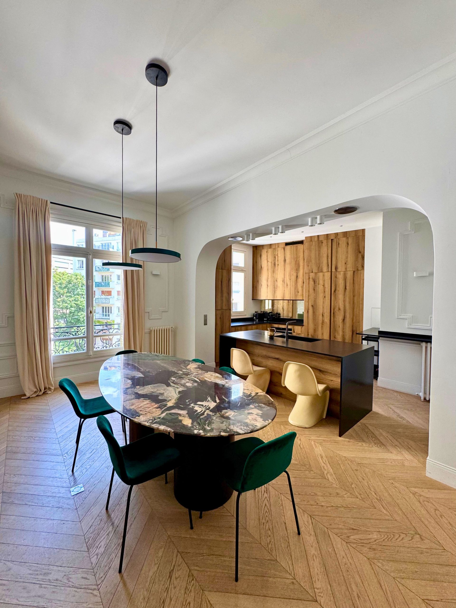Un subtil mélange d’élégance parisienne et de touches contemporaines, où chaque détail — du mobilier au choix des matières — reflète un goût sûr et assumé.