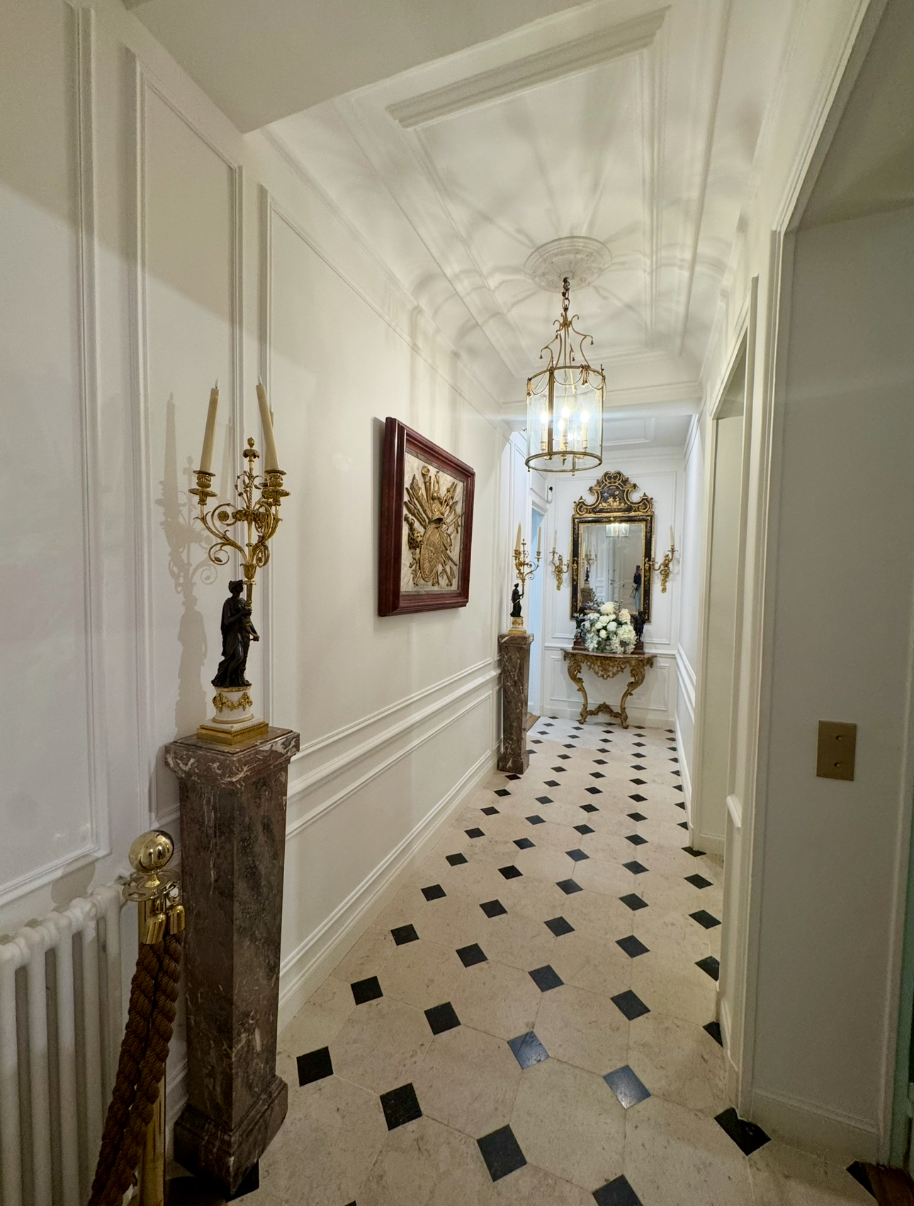 Couloir majestueux, hauteurs sous plafond et lumière douce composent une atmosphère feutrée et harmonieuse.